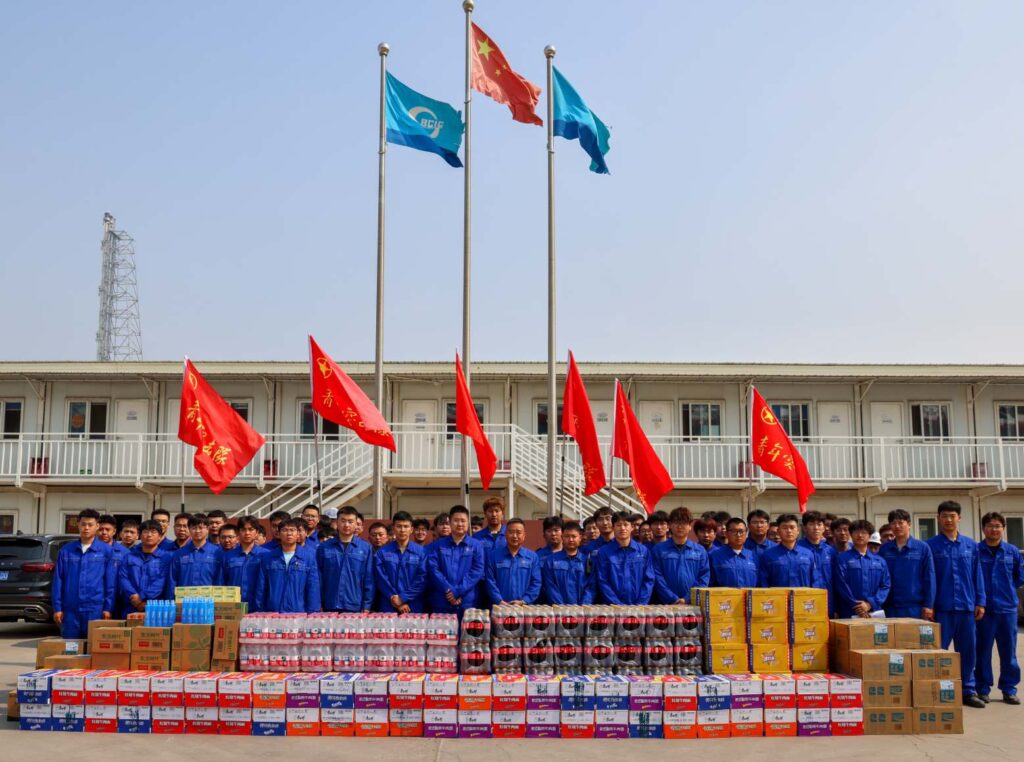 当天清晨,渤化发展青年志愿服务队数名青年志愿者集结公司二期项目临时指挥部,将200余箱各类生活物资卸车分类,摆放整齐。随后,王玉新对公司二期项目青年职工为试车攻坚所倾注的力量表达了强烈的肯定,他说:“青年朋友们,你们辛苦了,看着你们身上散发出的活力和自信,我就知道,二期项目的建设准没问题,企业不会忘记你们所挥洒的每一滴汗水,亦不会辜负你们每一个日夜所付出的努力。”在场的青年职工被王书记的发言所感染,爆发出热烈的掌声。