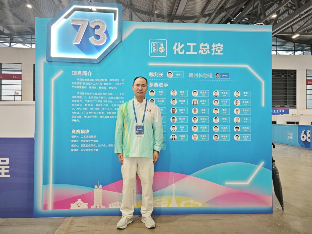 本次化工总控赛项竞争异常激烈,汇聚了来自全国各省、自治区、直辖市的顶尖技能人才。杨勇在比赛过程中动作娴熟,操作行云流水,展现出扎实的基本功和稳定的心理素质。尤其在应对各类复杂工况时,展现了出色的分析判断能力和决策能力,对突发情况的处置精准而果断,每一步操作都体现出了深厚的专业素养和丰富的实践经验。这种出色的综合表现,赢得了现场裁判组的高度认可。