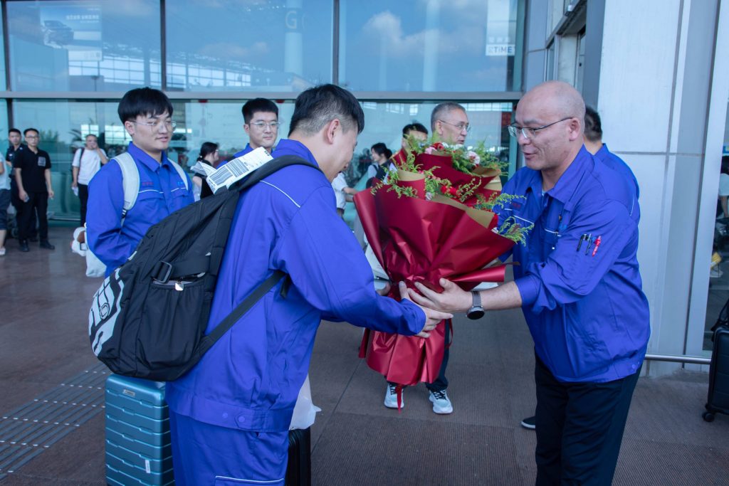 8月22日,渤化发展参加“红旗杯”班组长大赛团队凯旋,公司党委书记、董事长刘格宏亲赴机场迎接并对团队取得的优异成绩表示祝贺。